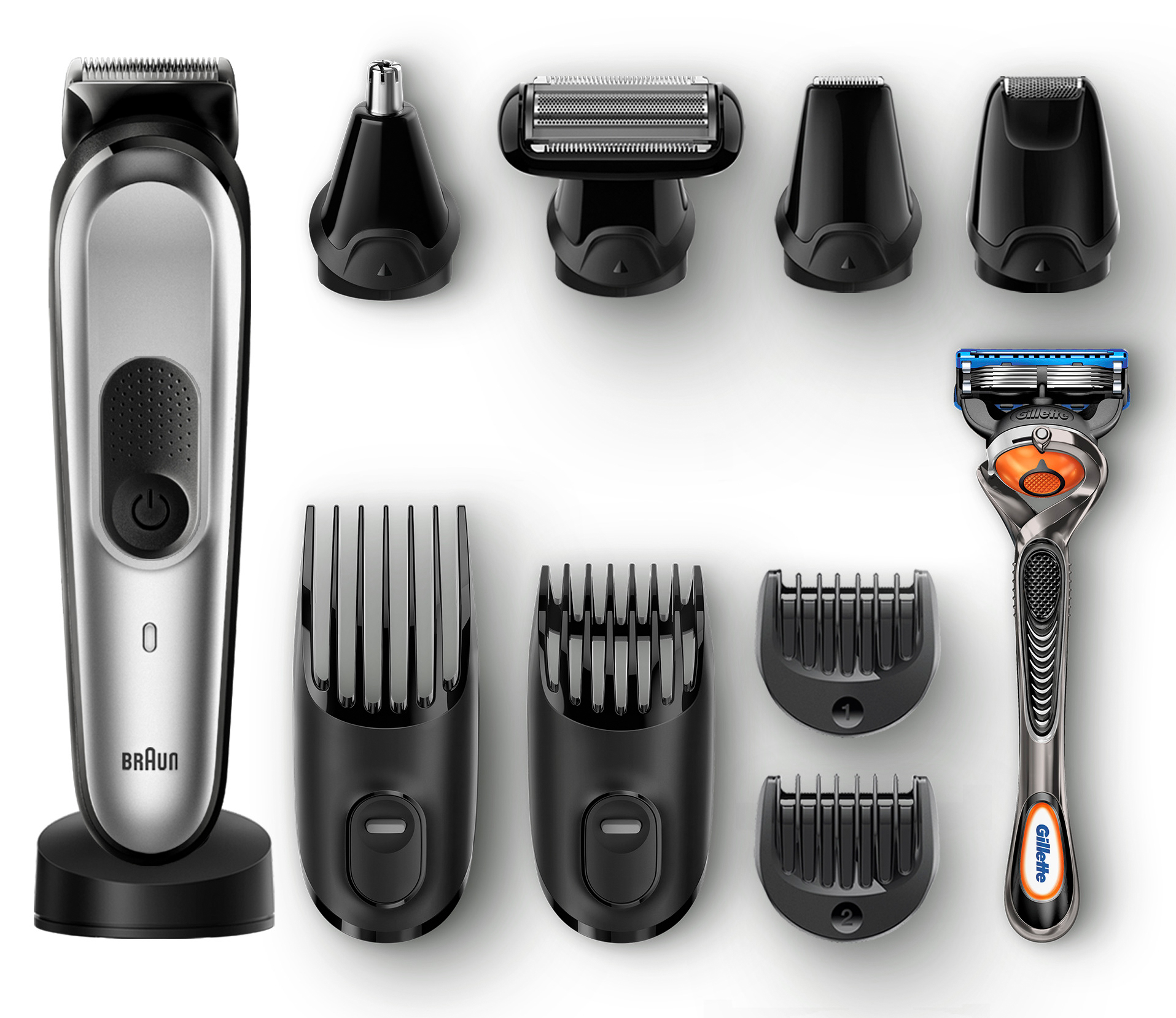 Das Braun Multigrooming-Kit 7020 bietet mit verschiedenen Aufsätze insgesamt zehn unterschiedliche Funktionen zum Stylen und Trimmen von Bart, Haar, Körper, Nase sowie Ohren.