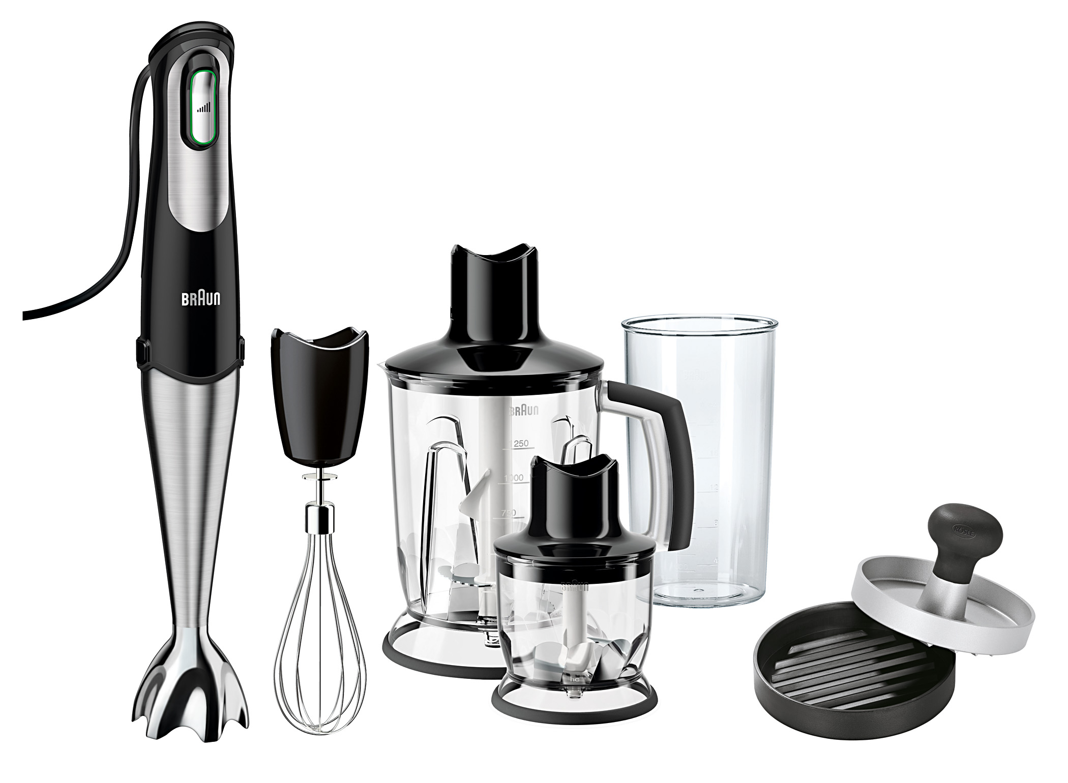 Der Braun Stabmixer Multiquick MQ 746 ist in limitierter Auflage erhältlich, inklusive Burgerpresse von Rösle.