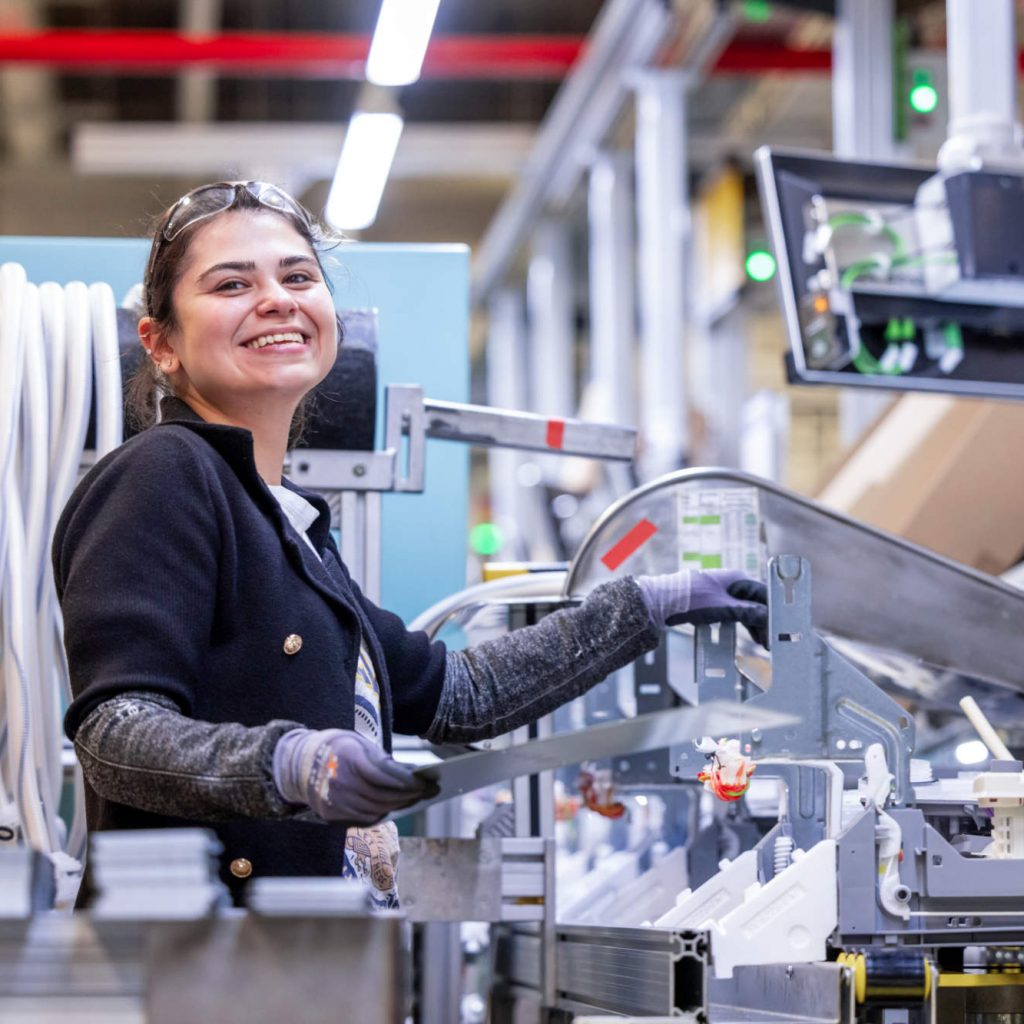 Bereits seit 2020 entwickelt und fertigt die BSH an allen Standorten weltweit CO2-neutral. Einer der größten Hebel dafür ist die stetige Steigerung der Energieeffizienz in der Produktion. 2022 hat die BSH mit weltweit mehr als 230 Energieeffizienzmaßnahmen rund 33,4 GWh Energie eingespart. Selbst erzeugter Ökostrom deckt dabei zunehmend den Strombedarf. Bis 2030 hat sich die BSH das Ziel gesetzt, den Strombedarf zu 100% mit Ökostrom zu decken.