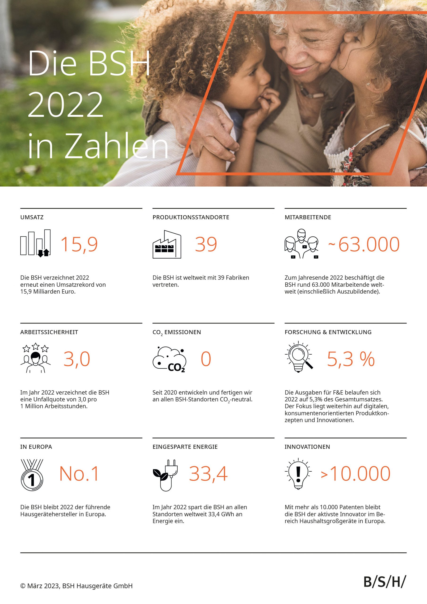 Zum Ende des abgelaufenen Jahres 2022 beschäftigte die BSH weltweit 63.000 Mitarbeitende – ein leichter Anstieg von 600 Beschäftigten beziehungsweise 1% gegenüber dem Vorjahr. „Wir sind stolz darauf, dass wir auch in diesen schwierigen Zeiten sichere Arbeitsplätze gewährleisten und gleichzeitig wachsen konnten. Nicht nur was den Umsatz angeht, sondern auch bei der Zahl der Beschäftigten“, sagte Finanzchef Gerhard Dambach.