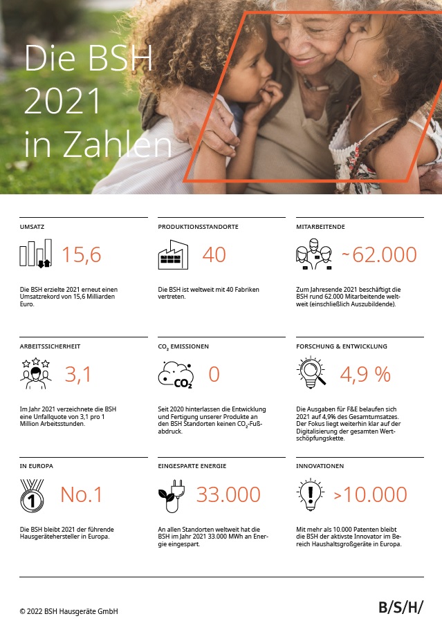Im Geschäftsjahr 2021 konnte die BSH ihre Umsätze in allen Regionen deutlich steigern. Europas führender Hausgerätehersteller profitierte von der weltweit unverändert hohen Nachfrage nach hochwertigen Hausgeräten, seinem starken, globalen Markenportfolio sowie digitalen Services für Konsumentinnen und Konsumenten.