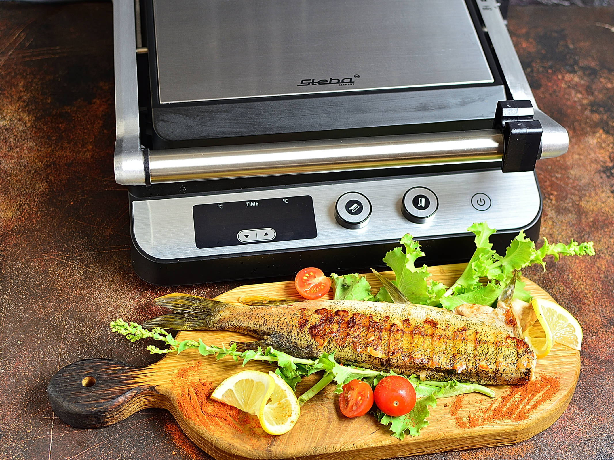 Steba FG-120-2 Der Steba Kontaktgrill FG 120 kann natürlich auch Fisch