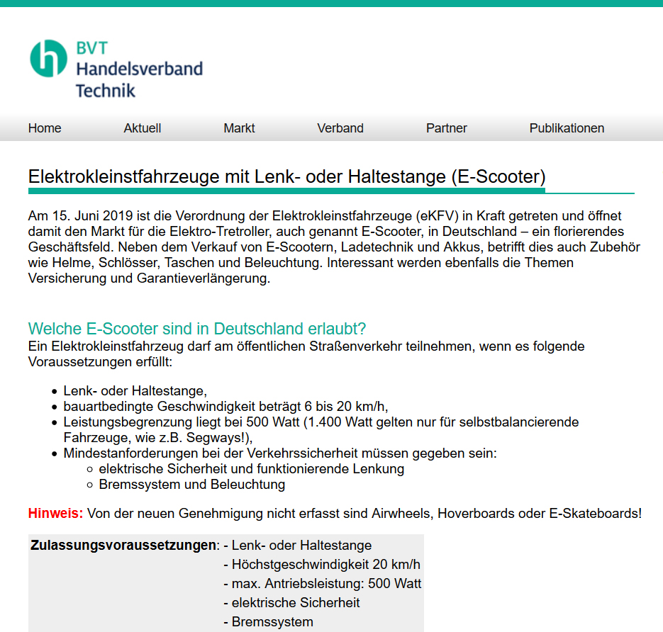Unter www.bvt-ev.de/escooter beantwortet der BVT alle Fragen rund um die neuen Fahrzeuge und liefert wertvolle Links zu Herstellermarken wie Moovi, POL-Planet, Walberg Urban Electrics, Segway und Monowheel.