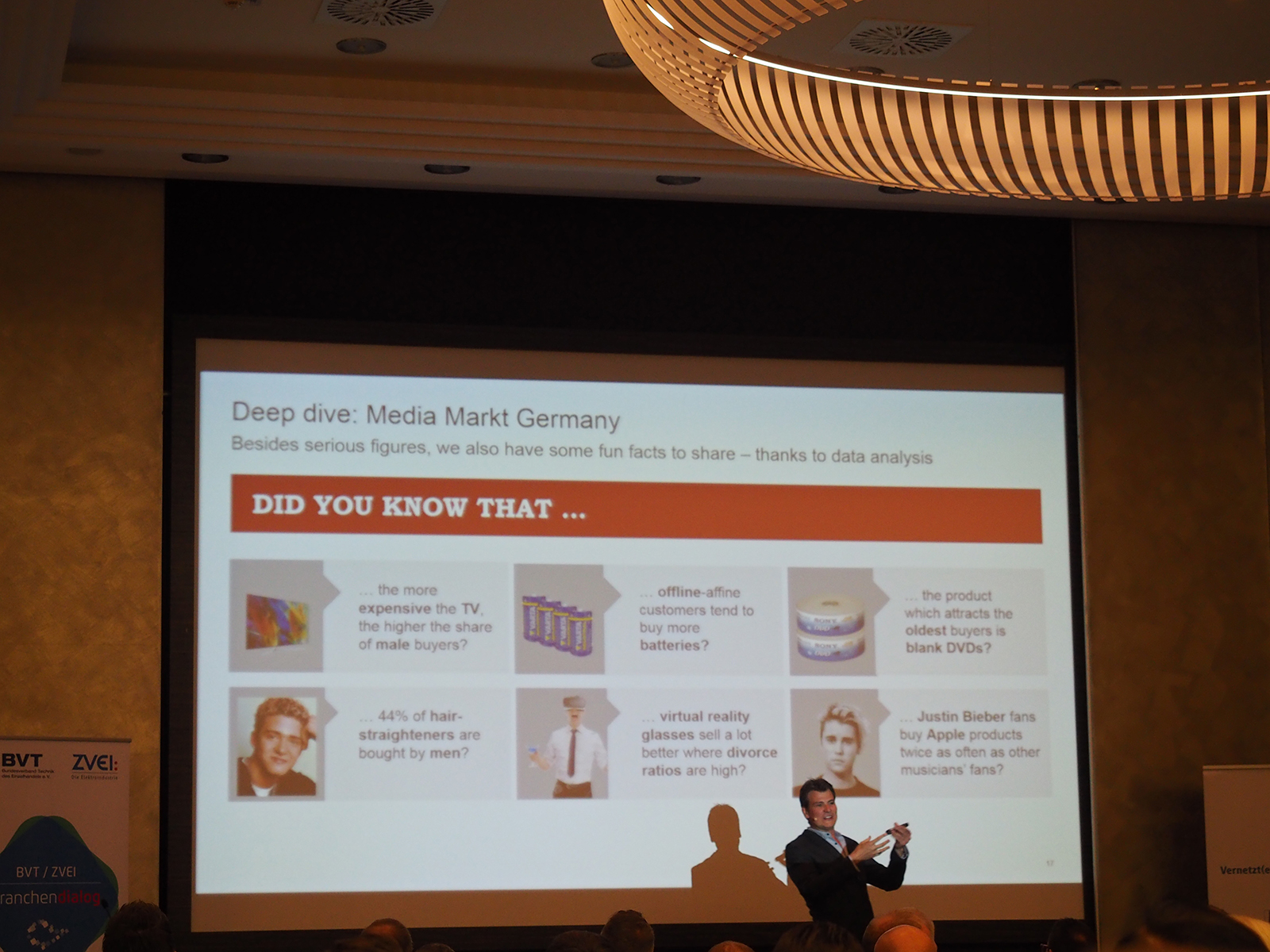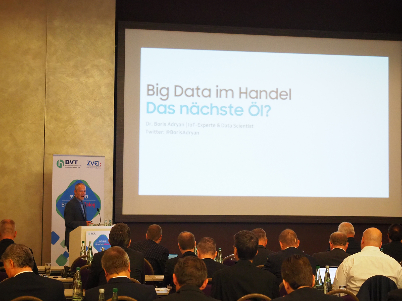 Der Reihe nach: Ist „Big Data das nächste Öl?“ fragte gleich zu Beginn des Branchendialoges Dr. Boris Adryan, Fachexperte für IoT und Datenanalysen. Sein Credo: „Erst die intelligente Verknüpfung von einzelnen Datensätzen wie soziale Medien, Verkaufszahlen, aktuelles Wetter, Geografie oder Sportvorlieben mit den definierten Kaufgruppen bringt den erhofften Mehrwert.“
