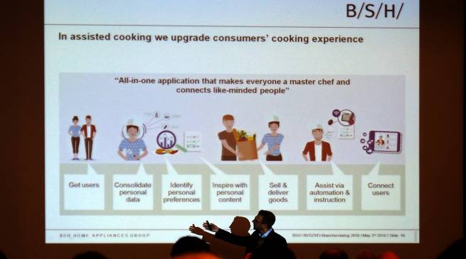 Kräftig Werbung für sein Unternehmen machte derweil Mario Pieper, Chief Digital Officer and Head of Digital Business Unit bei der BSH, mit seinem Vortrag über die Digitalisierung in der Küche: „Die Zukunft zieht ein.“ Dass die Digitalisierung in allen Bereichen des Lebens voran schreitet, ist nicht wirklich neu und dass die Geräte – wie Herd und die Dunstabzugshaube – miteinannder kommunizieren können, für IFA-Gänger ein alter Hut. Pieper: „Die Küche der Zukunft ist connected, um dem Kunden Mehrwerte zu bieten.“ Dabei werde die Steuerung über Sprache ein großes Thema sein.