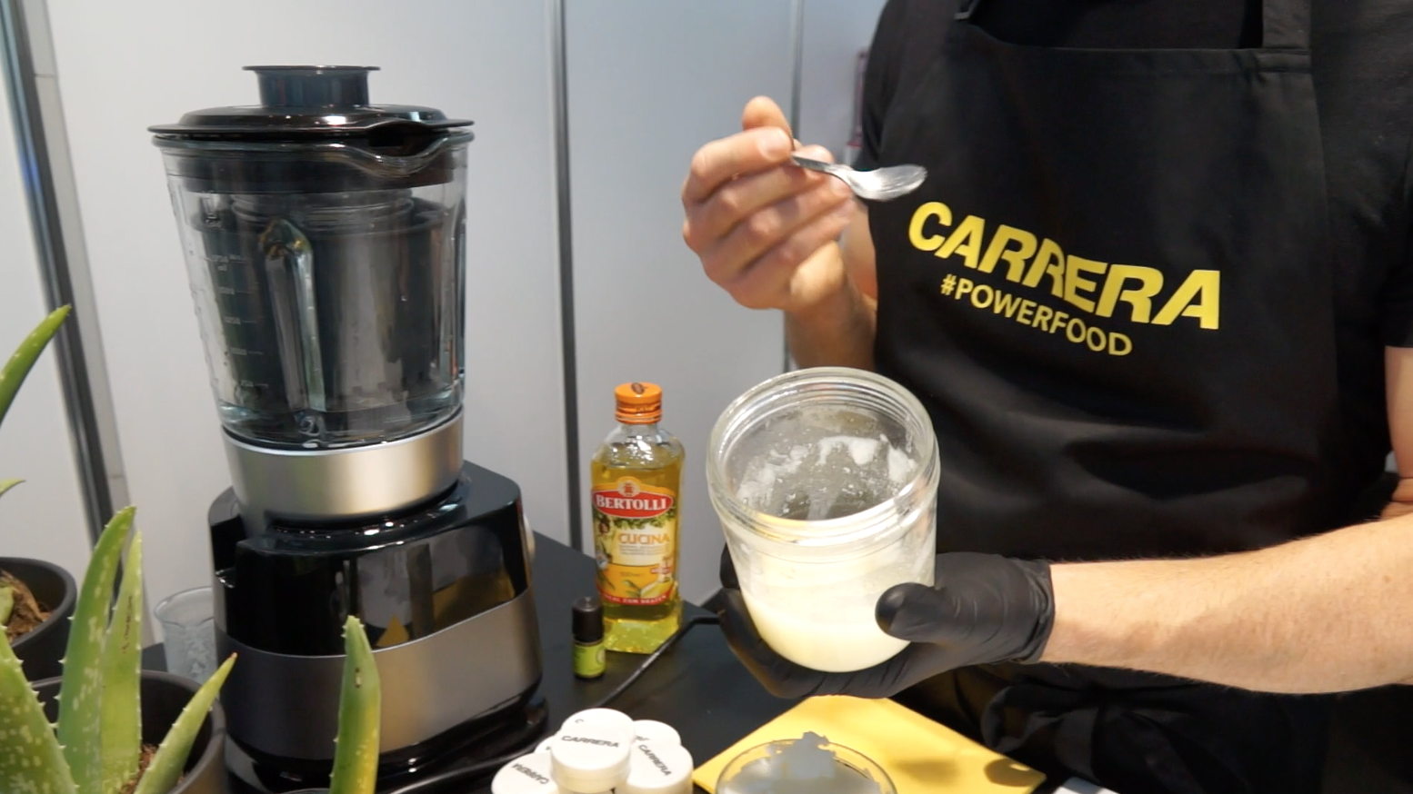 Auf der Electronic Partner-Messe hat Carrera den neuen Standmixer 655 gezeigt und demonstriert, wie man Naturkosmetik selbst mixt. Wir haben uns das angeschaut.