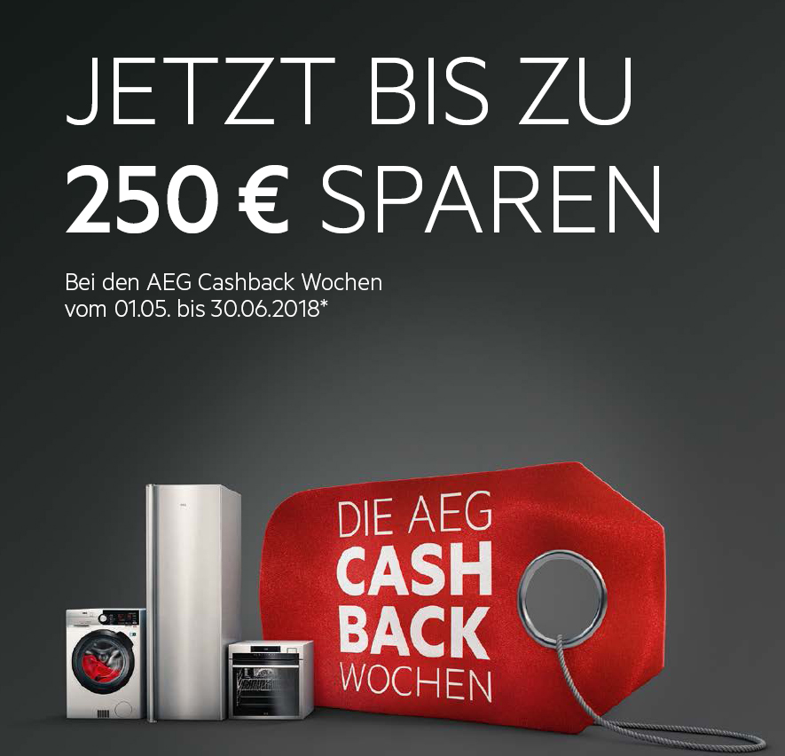 Von Backöfen über Kühl- und Gefriergeräte bis hin zu Waschmaschinen: Kunden können während der AEG Cashback Wochen (noch bis 30. Juni 2018) beim Kauf eines Aktionsgeräts kräftig sparen. Die Geräte der Mastery Range und der New Laundry Range sind bei ausgesuchten Elektronikfachhändlern erhältlich. Den Käufer erwartet bei Kauf eines Aktionsgerätes – je nach Produkt und Modell – eine Rückerstattung in Höhe von 50 bis 250 Euro.