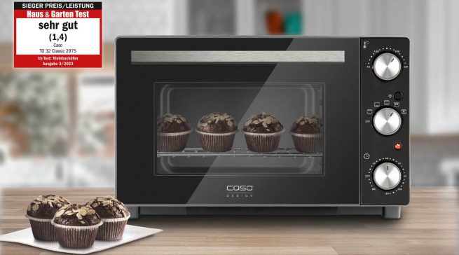 Zwei Modelle der Backofenserie TO von Caso bewertet „Haus & Garten Test“ (Ausgabe 03/2023) mit „sehr gut“: den TO 32 electronic und den TO 32 Classic.