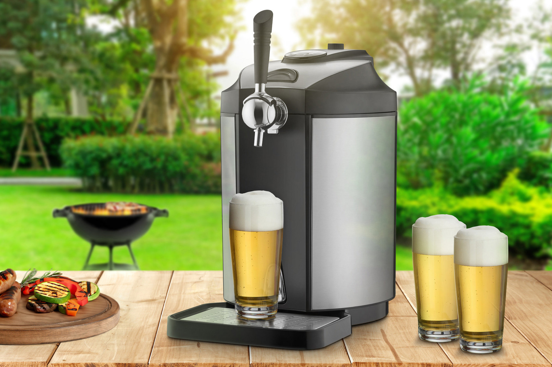 Die Zapfanlage ist für alle gängigen 5-Liter-Bierfässer geeignet und sorgt für qualitätserhaltende Kühlung bis zu 10 Tage.
