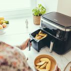 Mit der neuen Heißluftfritteuse von CasoDesign lassen sich Pommes, Fisch, Gemüse, Gebäck und vieles mehr auch ohne Fett perfekt zubereiten. Die AF 660 Duplex kann aber noch mehr: Mit der herausnehmbaren Trennwand können verschiedene Lebensmittel gleichzeitig gegart werden. Mit nur 43 Dezibel ist die Design Heißluftfritteuse dabei auch noch besonders leise. Perfekt: Die AF 660 Duplex ist sofort startbereit – ein Aufheizen ist nicht nötig, und auch die Garzeiten verkürzen sich.