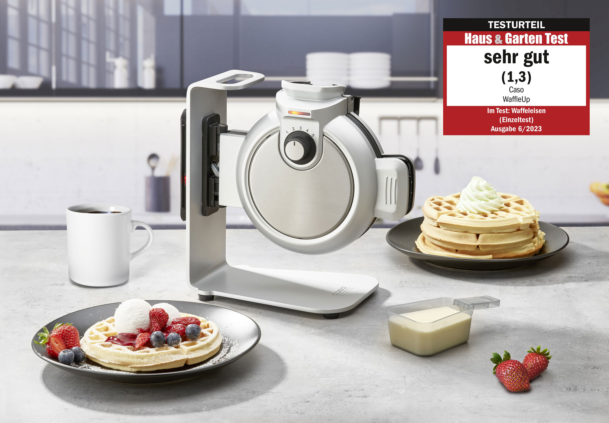 Ob hell, fluffig, goldbraun oder knusprig – das Waffeleisen WaffleUp von Caso Design macht einfach Spaß. Anders als herkömmliche Waffeleisen bietet das WaffleUp ein vertikales Backsystem, mit dem sich perfekt Waffeln belgischer Art herstellen lassen.