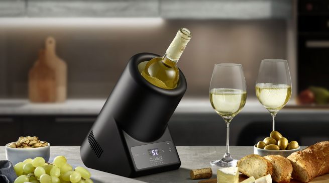 Ein perfekt temperierter Wein ist der ideale Begleiter bei einem guten Essen oder Barbecue. Der neue Design Flaschenkühler VinoCase Black hält die Temperatur der bereits gekühlten Flasche Wein optimal zwischen 5 und 18 °C und ist besonders leise im Betrieb.
