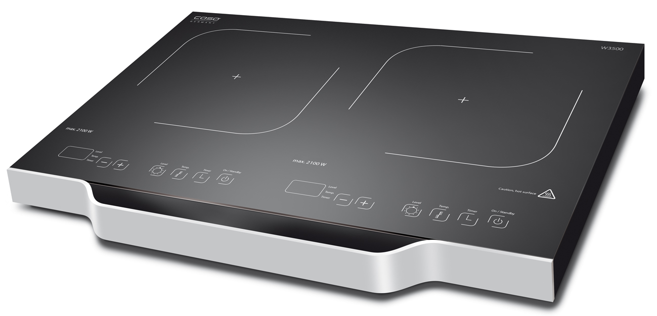 Das Caso Induktionskochfeld W3500 hat eine Leistung von 3500 Watt und 12 Leistungsstufen. Der Timer hat eine Zeitvorwahl bis 180 Minuten. Die Bedienung erfolgt über Sensor Touch.