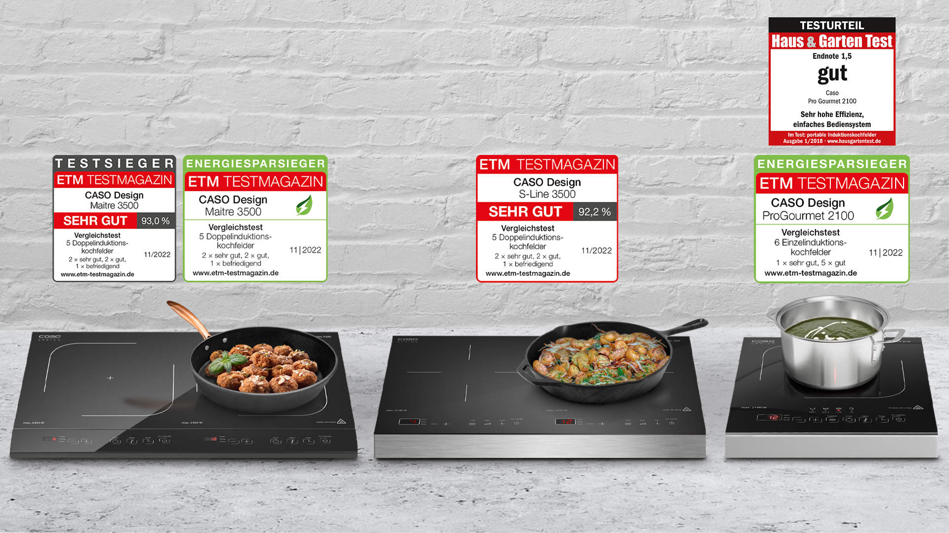 Das ETM Testmagazin (Ausgabe 11/2022) hat drei Induktionskochfelder von Caso ausgezeichnet.