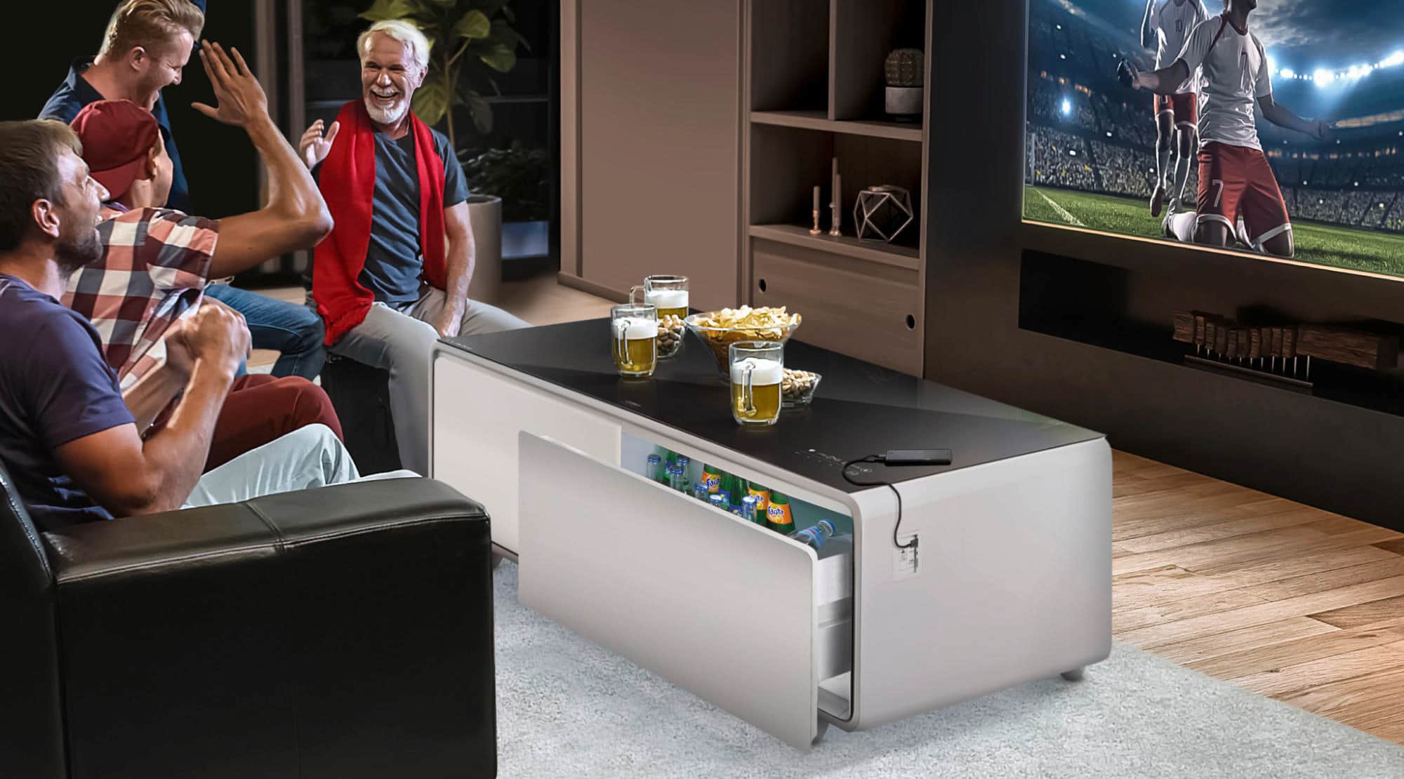Für den Sommer und die nahende Fußball EM steuert Caso den Lounge-Tisch „Sound & Cool“ bei, Tisch, Soundbar und Getränkekühler in einem.