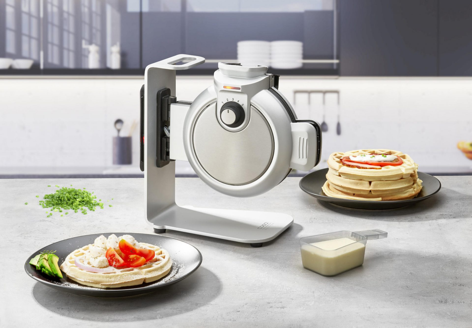 Das Caso Waffeleisen WaffleUp bietet, anders als herkömmliche Waffeleisen, ein vertikales Backsystem, mit dem sich Belgische Waffeln herstellen lassen.