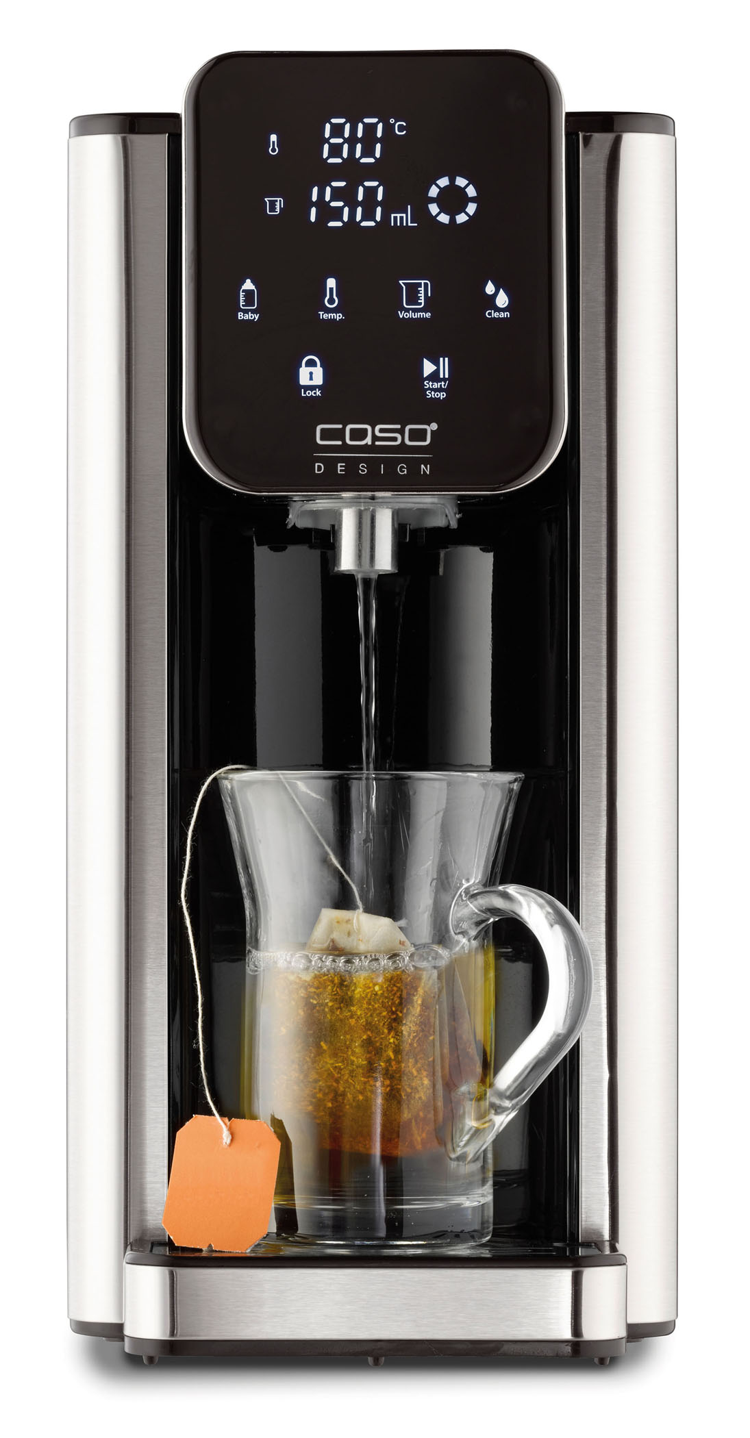 Der Caso Wasserkocher Design HW 660 bereitet heißes Wasser in wenigen Sekunden. Acht verschiedene Mengenausgaben (von 100 bis 400 ml und kontinuierlich) und sieben verschiedene Temperatureinstellungen (40 bis 100° C in 10° C Schritten) stehen zur Wahl. Der große 2,7 Liter Wassertank ist abnehmbar und somit leicht zu befüllen, aber auch zu reinigen.