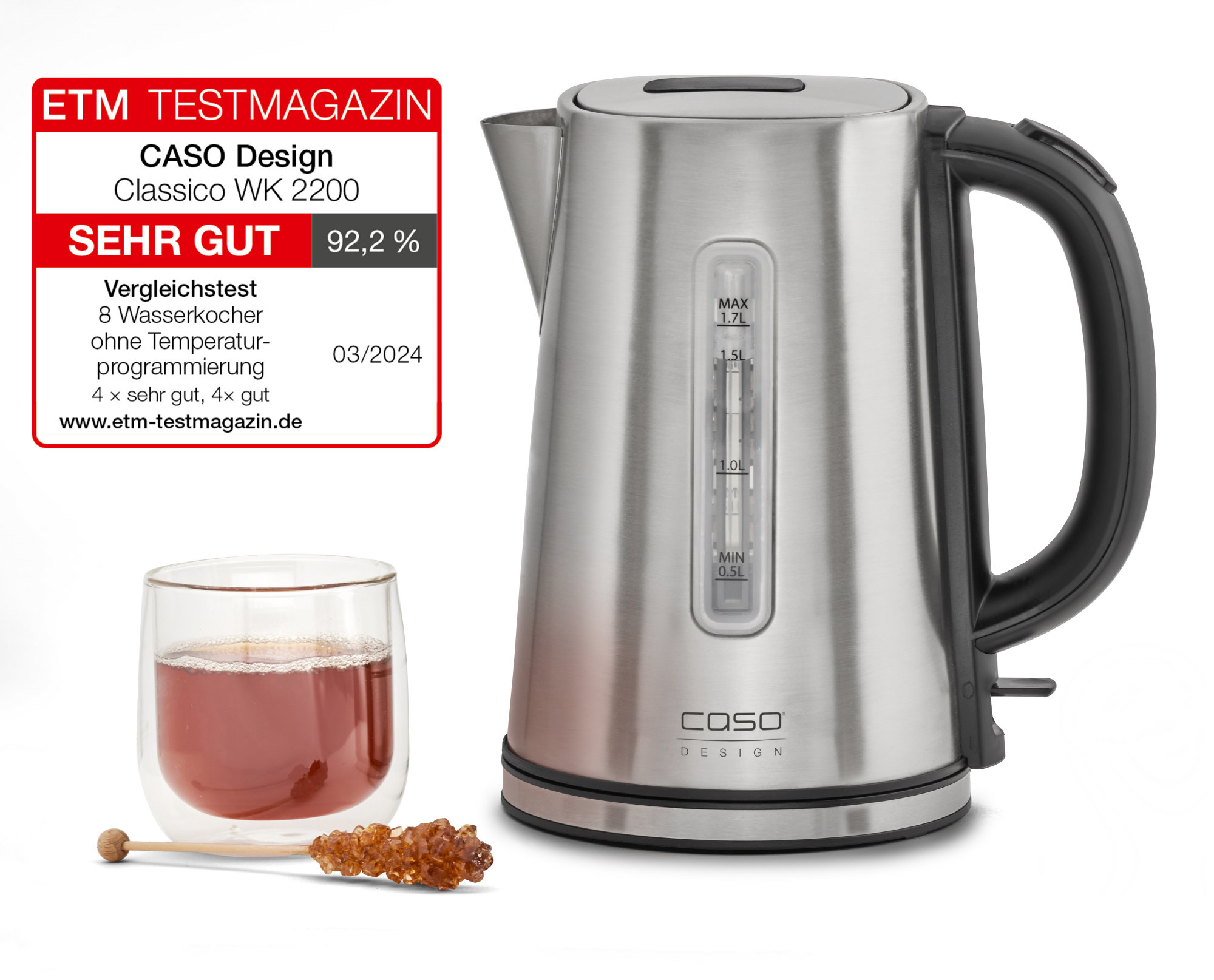 Die Wasserkocher Classico WK 2200 und Selection WK 2200 von Caso wurden in unabhängigen Testmagazinen als „sehr gut“ ausgezeichnet.