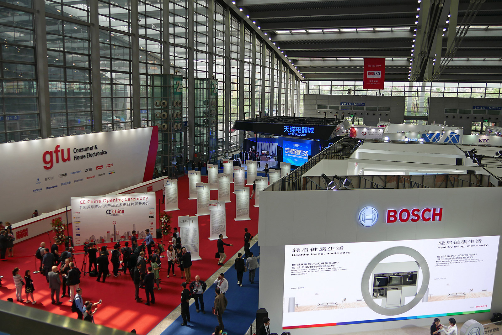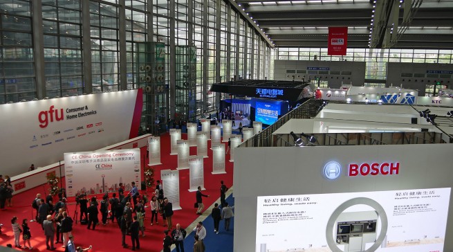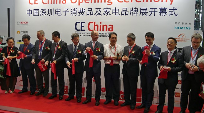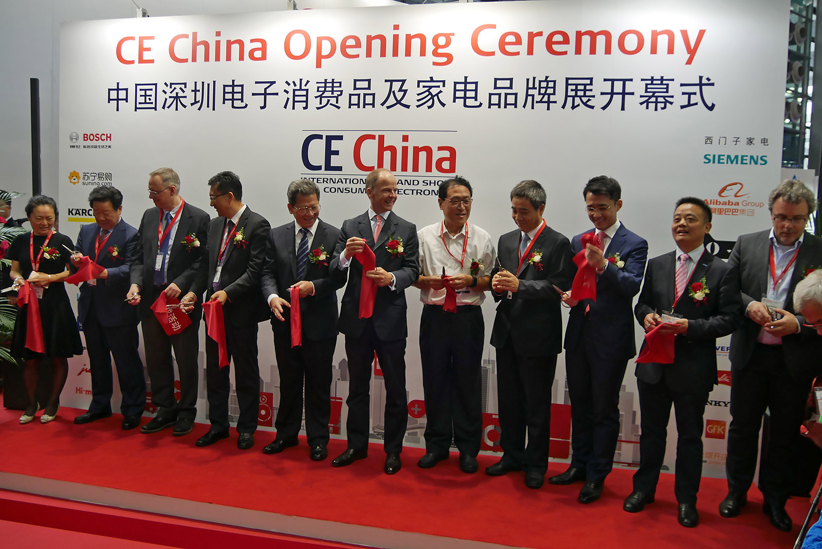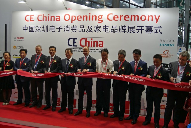 Heute Morgen in der chinesischen Metropole Shenzhen: Die Messe CE China, “A Global IFA Event” ging mit dem traditionellen Durchschneiden des roten Bandes an den Start. Rund 150 Aussteller präsentieren sich in dem modernen Messegelände von Shenzhen, allen voran deutsche Hausgeräte Hersteller wie Kärcher, Melitta sowie Severin. Beeindruckende Auftritte der Marken Bosch und Siemens, wie wir sie von der IFA aus Berlin kennen, dominieren den ersten Eindruck der CE China.