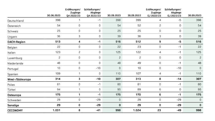 Ceconomy, die Mutter von MediaMarkt und Saturn, hat das Ende September abgelaufene Geschäftsjahr 2022/2023 mit einem Umsatzplus gegenüber dem Vorjahr um +4,7% auf 22,2 Mrd. EUR abgeschlossen. Der Umsatzanstieg im 4. Quartal 2022/23 lag mit +2,4% über dem Vorjahreswert. Währungs- und portfoliobereinigt lag das Plus bei 4,7%.