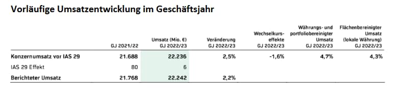 Das sind die vorläufigen Ergebnisse aus dem Geschäftsjahr 2022/23: