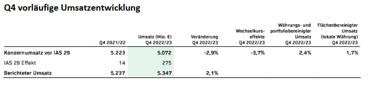 Das sind die vorläufigen Ergebnisse im 4. Quartal 2022/23: