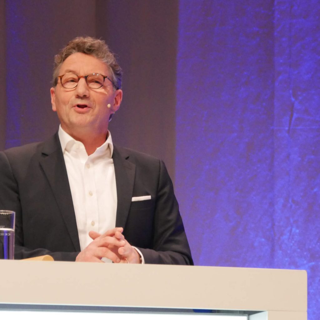 Gastredner Volker Irle, Geschäftsführer der „Arbeitsgemeinschaft Die Moderne Küche“ (AMK) versprach ein wenig Licht am Ende des Tunnels der Dauer-Krisen, insbesondere der Inflation: „Der Konsument braucht acht Monate, um sich an die neuen Umstände zu gewöhnen.“ Dass wecke die Hoffnung auf eine neue, entstehende Kauflust. Und zumindest in den Großstädten habe die Küche das Auto als neues Statussymbol überholt: „In den Großstädten verliert das Auto an Bedeutung, die Küche indes – Cocooning wird bleiben – hat gewonnen.“