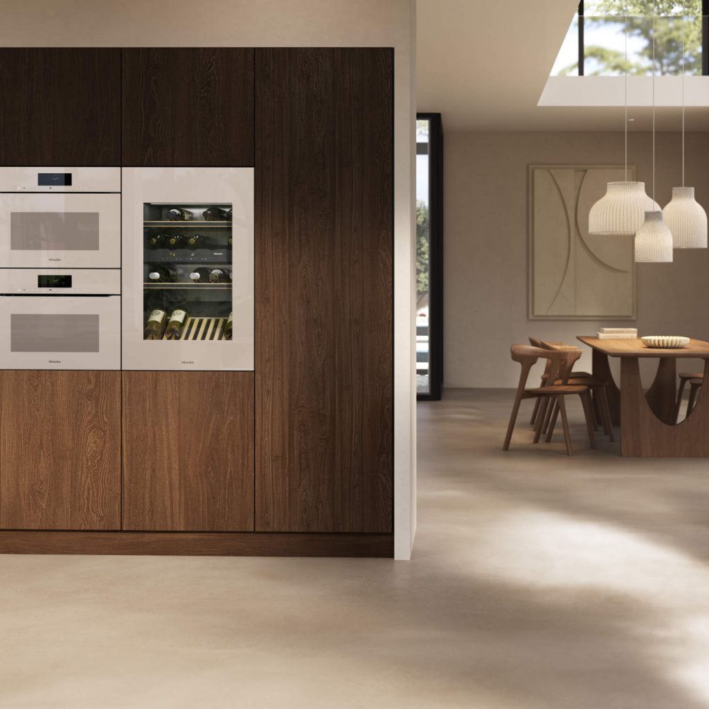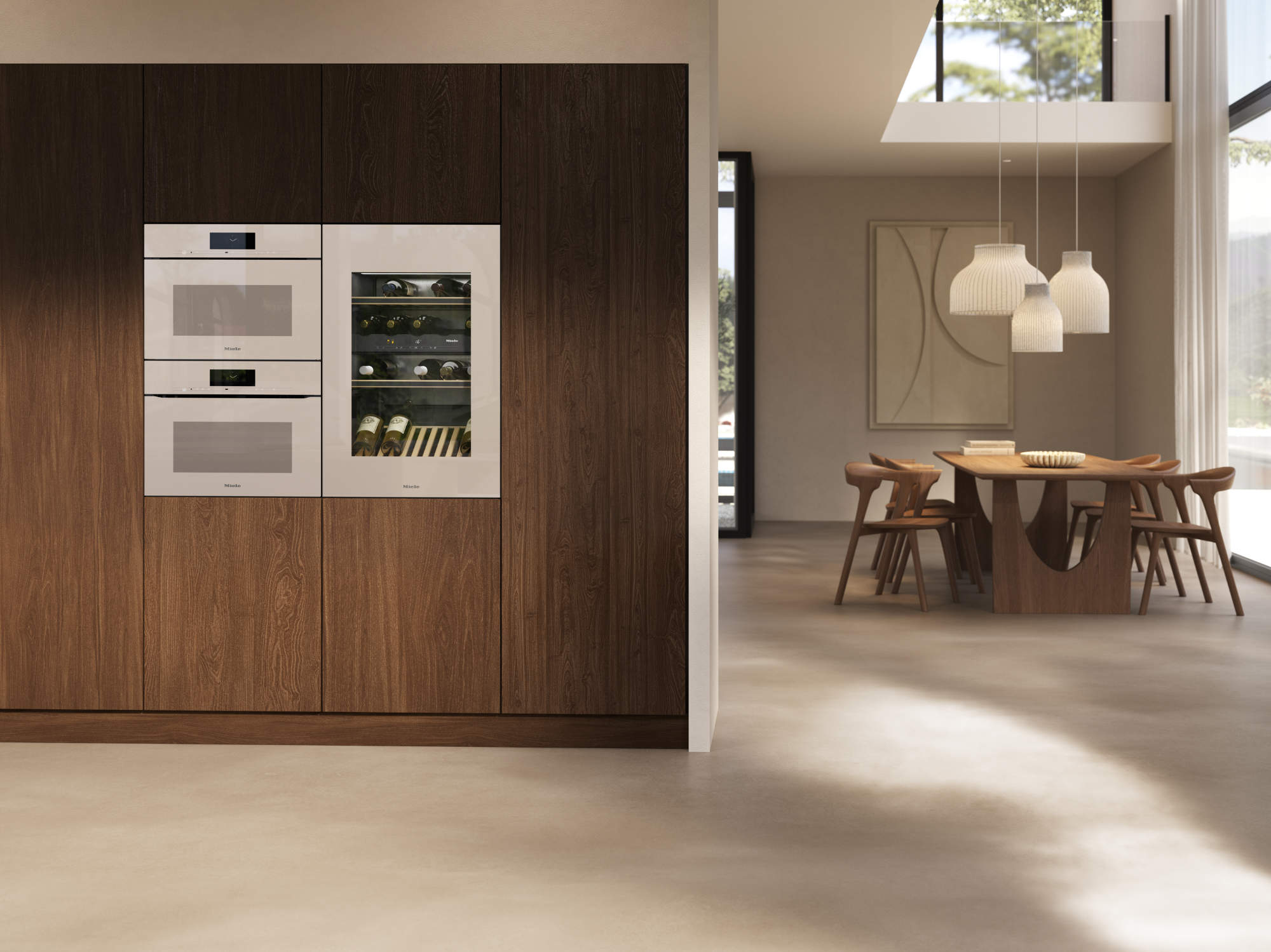 Mit Pearlbeige und Obsidianschwarz matt präsentierte Miele trendprägende Farbwelten für Einbaugeräte. Insbesondere der neue Farbton Pearlbeige – eine Komposition aus Beige und Grau – fasziniert und passt zu hellen wie dunklen Einrichtungsstilen. Für die Geräte in Obsidianschwarz matt bietet Miele im Jubiläumsjahr eine kostenlose Garantieverlängerung. Weitere Highlights: Neue Dunstabzugshauben sowie hochwertiges Kochgeschirr, das insbesondere für Kochfelder mit integriertem Dunstabzug geeignet ist.