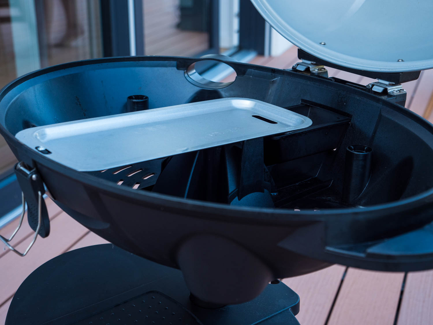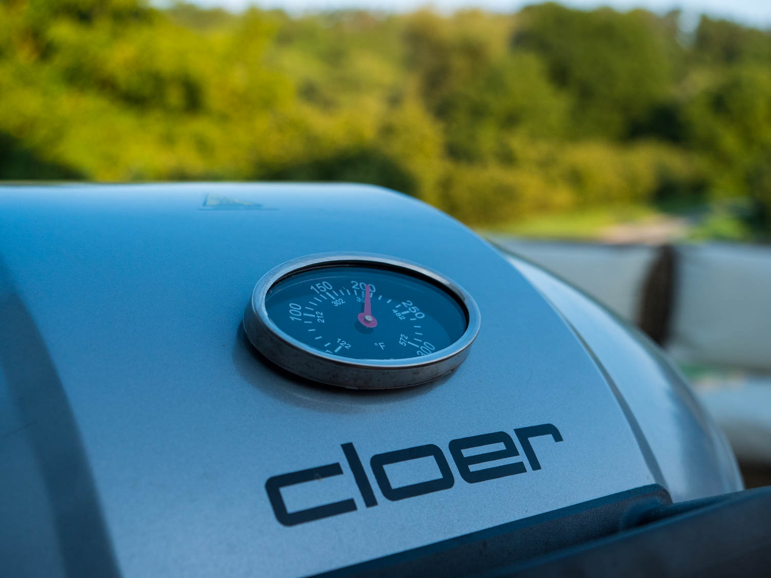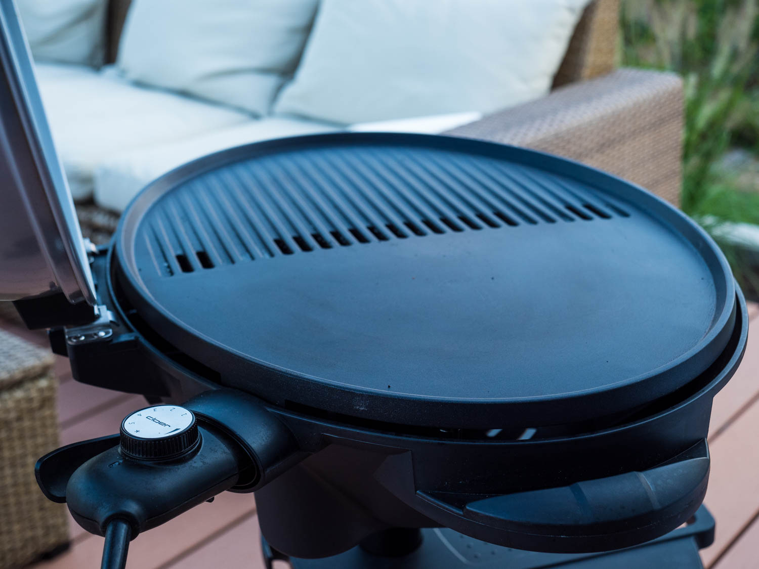 Ansonsten beschränkt sich der Elektrogrill von Cloer auf das Wesentliche. Unnötige Spielereien sucht man vergebens. Über ein Drehrad lässt sich die gewünschte Leistung abrufen, die entsprechende Temperatur könnt ihr am im Deckel integrierten Thermometer ablesen. Das war’s. Wobei, die praktische Ablage unter der Grillplatte muss hier ebenfalls erwähnt werden, denn wer viel und gerne grillt, der weiß, wie wichtig Ablageflächen sind.