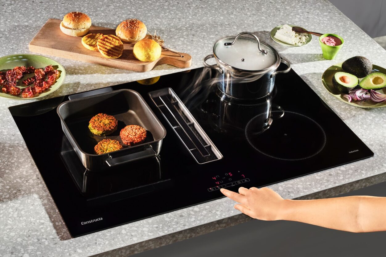Ab sofort bietet Constructa zwei neue rahmenlose Induktionskochfelder mit integriertem Dunstabzug an.