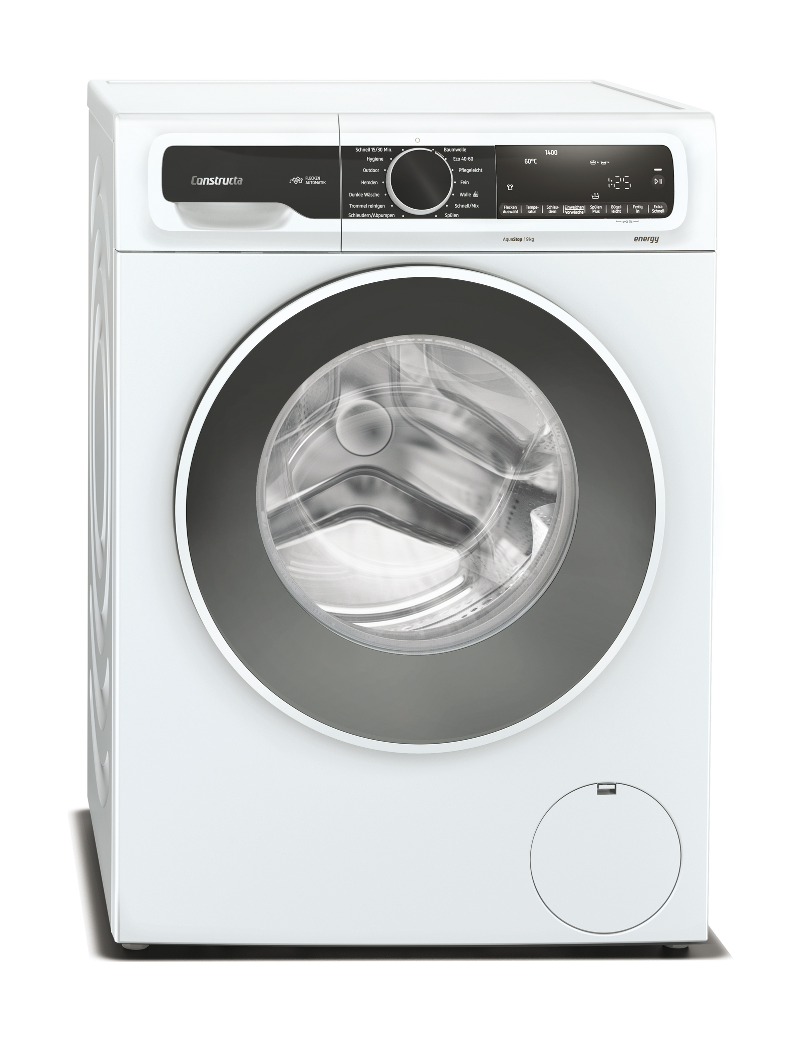 Die integrierte Fleckenautomatik wird optional zur Behandlung von Flecken aus Gras, Blut, Rotwein oder Öl gewählt. Zusätzlich können Textilien im Programm Vorwäsche gründlich eingeweicht werden. Die maximale Drehzahl beträgt 1.400 U/Min.