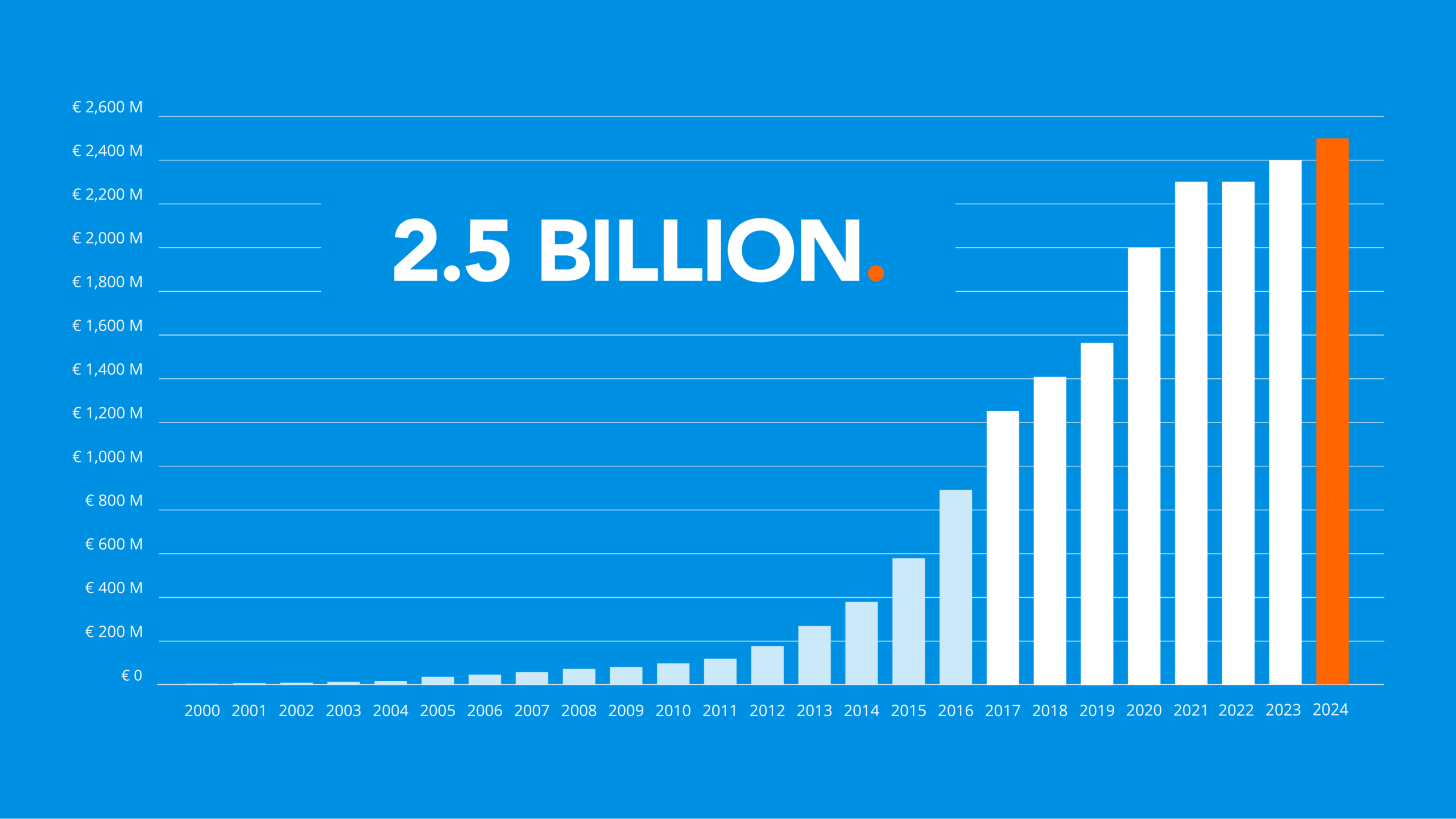 Coolblue Umsatz im Laufe der Jahre // 2024 Rekordumsatz von 2,46 Milliarden Euro