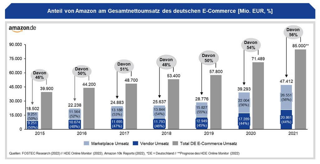 „Dass Amazon bereits 56% des gesamten deutschen E-Commerce-Umsatzes generiert, ist bei der Entwicklung nicht verwunderlich“, kommentiert Markus Fost, Managing Partner von Fostec & Company, der in mehr als 200 E-Commerce-Strategieprojekten Markenhersteller aus verschiedenen Branchen bei der Skalierung des Amazon-Geschäfts unterstützt hat.