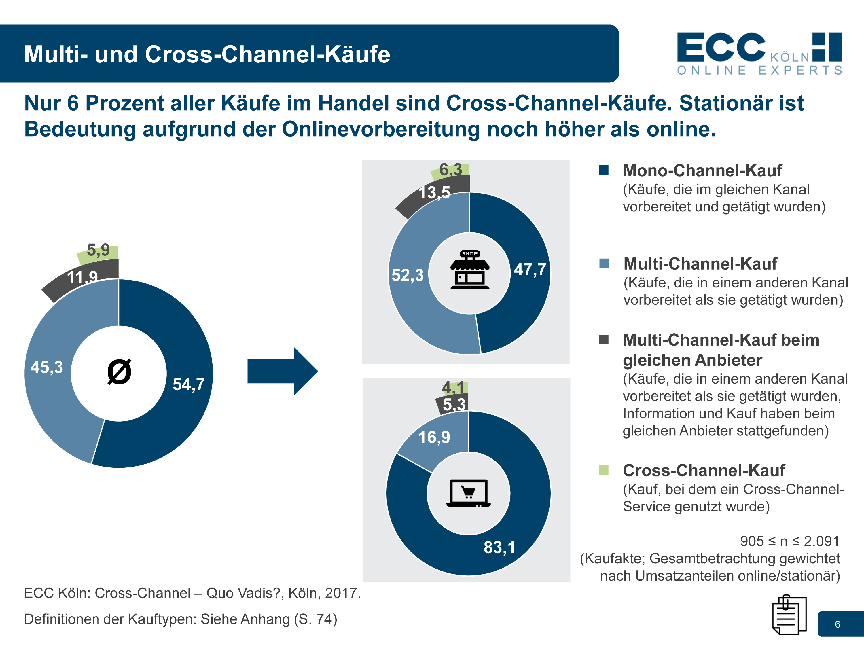 Traditionelle Handelskäufer sterben zunehmend aus, denn mehr als jeder zweite Konsument entscheidet abhängig von Situation und Produkt selektiv, ob er on- oder offline kauft. Außerdem sind Onlineinformationen vor dem Kauf im Geschäft hochrelevant: 45 Prozent aller stationären Käufe werden mittlerweile online vorbereitet.