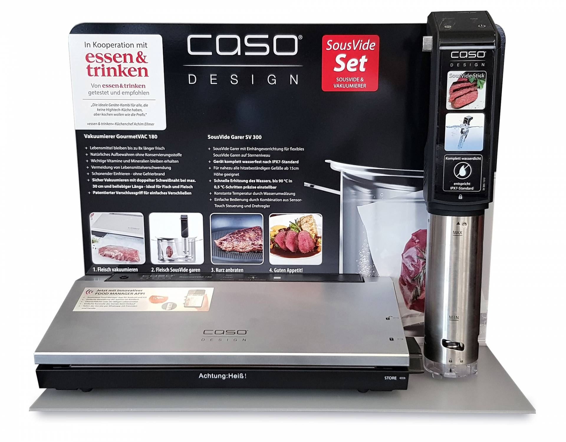 Caso geht neue Wege im Cross-Marketing und vereinbart mit der Zeitschrift „essen & trinken“ eine weitreichende Produktkooperation. Mit 1,85 Mio. Lesern im Monat ist das Magazin die reichweitenstärkste Kauf-Zeitschrift für Food in Deutschland. Sie steht für Lebensfreude, Genuss sowie Koch-Kompetenz und passt daher prima zum Anspruch von Caso. Zum Start der Kooperation gibt es ein Set aus SousVide Garer SV 300 und Vakuumiersystem GourmetVAC 180 zum Preis von 199,99 € (UVP).