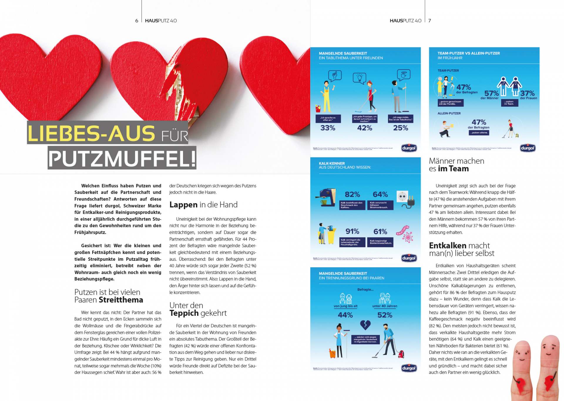 Die halbe Nation im Home-Office, viele andere machen Dinge, die sonst eher als lästig galten, nun aber, in den Zeiten des Zwangs-Cocooning, ein Gefühl von „business as usal“, gar Geborgenheit verbreiten können: Aufräumen, ausmisten, Fenster putzen, Staubsaugen & Wischen. Alles Tätigkeiten, die auch für viele Paare ein Konfliktherd sind. Denn spätestens hinter der nächsten Ecke lauert der nächste Flusen und damit der nächste Streit. Liebes-Aus für Putzmuffel? Eine aktuelle Umfrage zeigt: Bei 44 % hängt aufgrund mangelnder Sauberkeit mindestens einmal pro Monat der Haussegen schief.