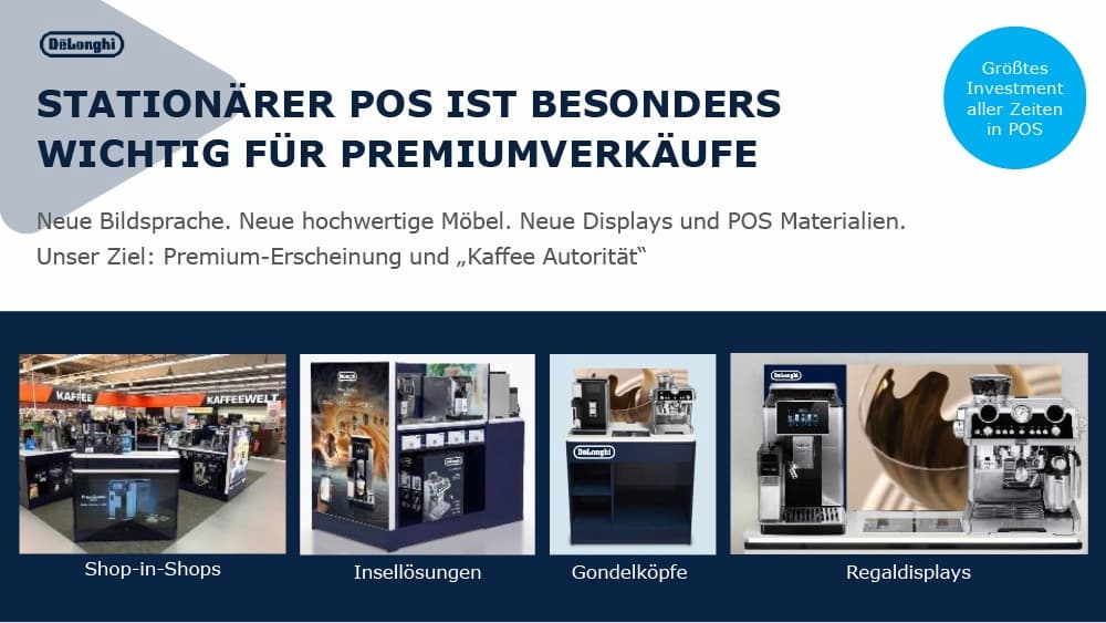 Dabei wird schrittweise auch eine neue Corporate Identity eingeführt, die am PoS zu einer noch wertigeren Markenauffrischung führen soll. Zudem etabliert sich De’Longhi weiter als Marktführer bei den mobilen Klimageräten mit sehr starkem Zuwachs bei tragbaren Geräten.
