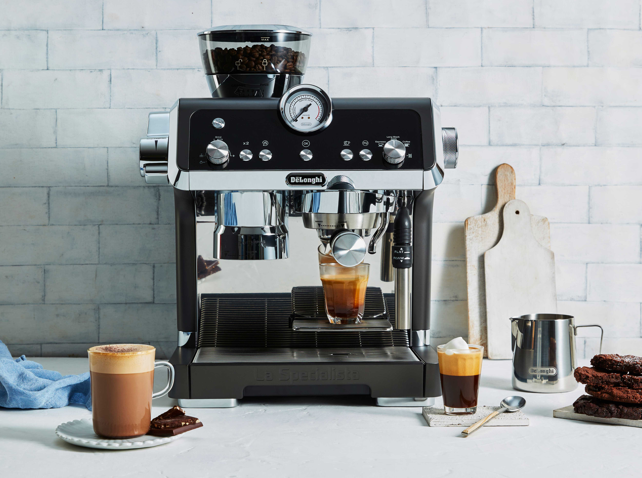 Die De’Longhi Espressomaschine La Specialista ist ein halbautomatischer Siebträger in einem eleganten Edelstahlgehäuse und den neuen Farben Schwarz und Rot.