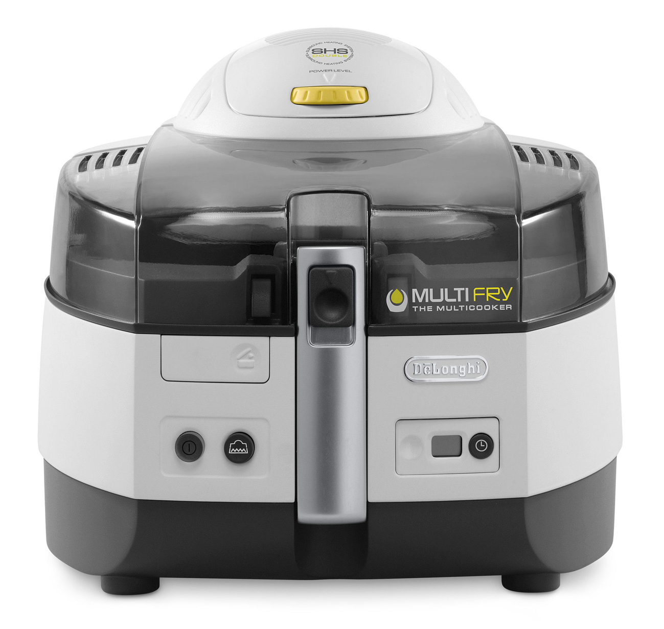 Die De’Longhi Heißluftfritteuse MultiFry Chef FH 1363 hat Platz für bis zu 1,7 kg frische Kartoffeln und bis zu 1,5 kg gefrorene Pommes frites. Das ist ausreichend für 8 Portionen. In nur 27 Minuten ist 1 kg tiefgefrorene Pommes frites zubereitet. Der Multicooker verarbeitet frische Kartoffeln, tiefgefrorene Pommes frites, Pizza, Kuchen, Risotto, Eintopf, Fisch, Fleisch und vieles mehr. Mit dem Umluft-Heizsystem SHS Double (SHS Surround Heating System) bleiben die Speisen im De’Longhi Heißluftfritteuse MultiFry Chef FH 1363 außen knusprig und innen saftig zu.