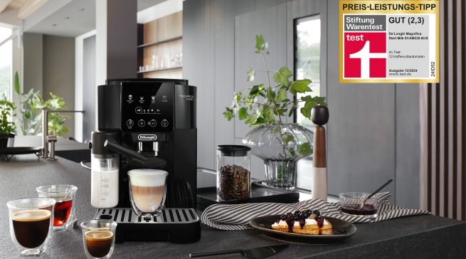 Bei der Magnifica Start Milk lobten die Tester besonders die intuitive Bedienung und das ausgezeichnete Preis-Leistungs-Verhältnis. Dank innovativer Funktionen wie der LatteCrema-Technologie bietet der Vollautomat Premiumqualität für jede Küche. „Die Magnifica Start Milk ist der beste Beweis dafür, dass Qualität, Innovation und Langlebigkeit auch für preisbewusste Kaffeeliebhaber zugänglich sein können,“ so Winkler.