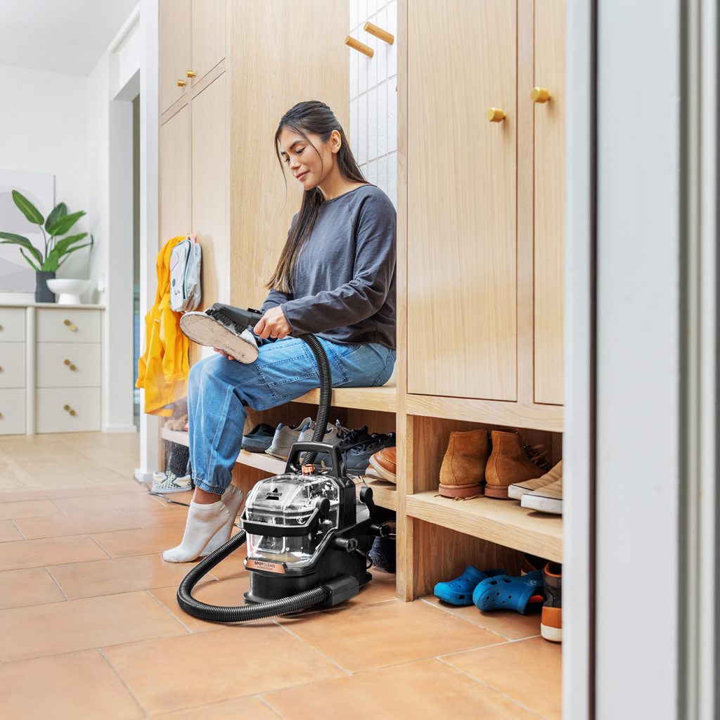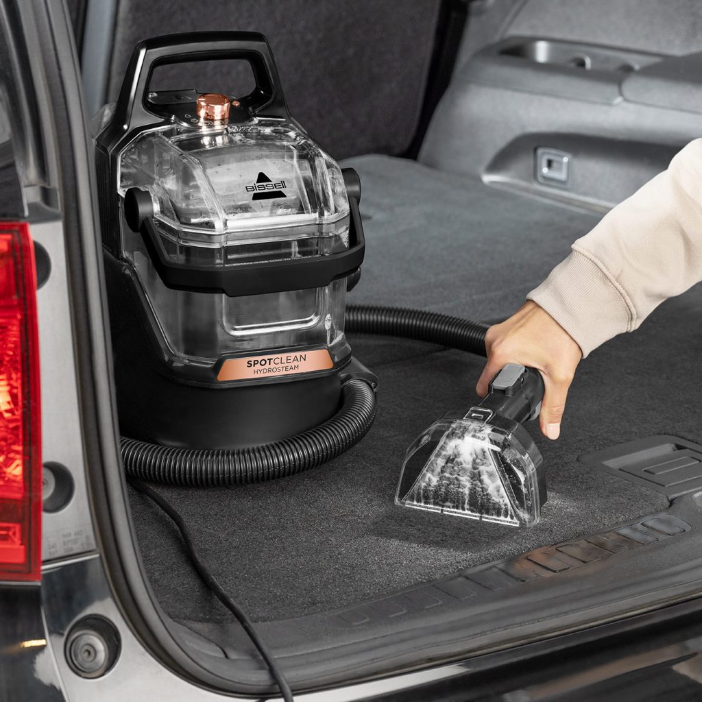 Der SpotClean HydroSteam™ beweist Vielseitigkeit: Er reinigt Teppiche, Polstermöbel und andere textile Oberflächen, zum Beispiel in Autoinnenräumen. Auch Kindersitze und Haustierbetten, Kissen und sogar verschmutzte Fugen in Bad oder der Küche, Vorhänge und dreckige Schuhe werden mit der Reinigung aus Dampf- und Saugkraft hygienisch sauber.