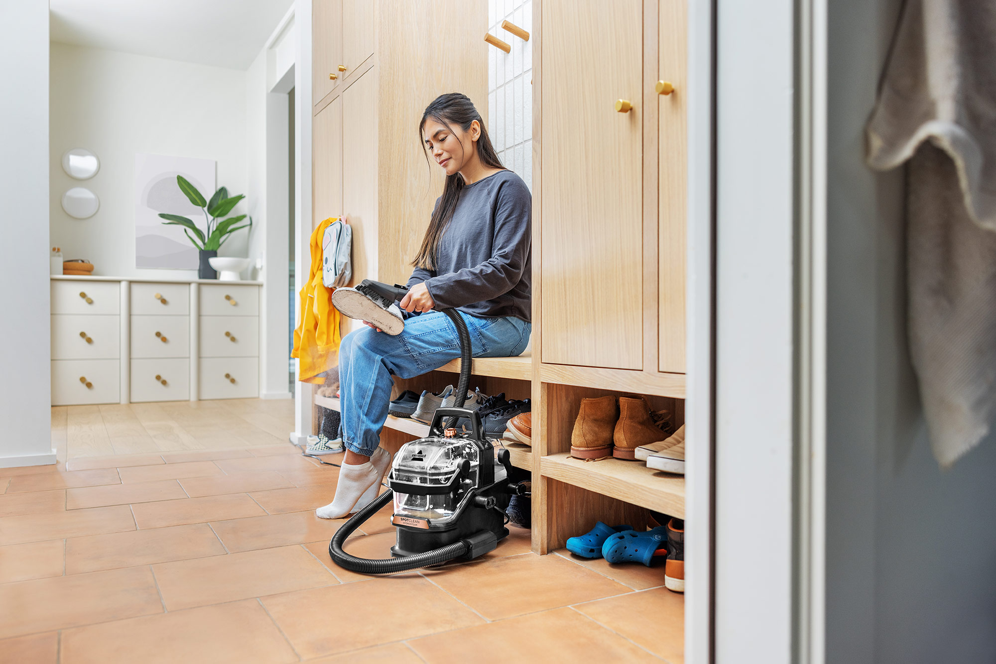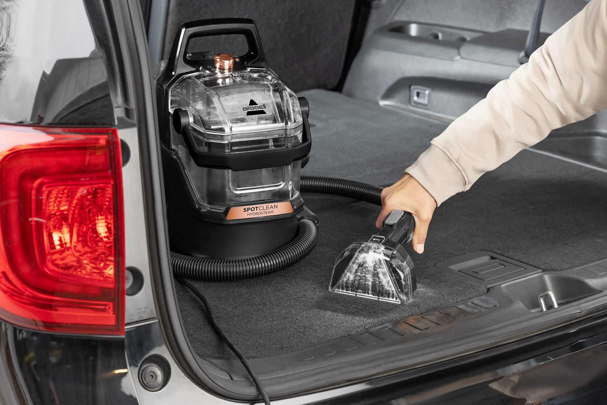 Der SpotClean HydroSteam™ beweist Vielseitigkeit: Er reinigt Teppiche, Polstermöbel und andere textile Oberflächen, zum Beispiel in Autoinnenräumen. Auch Kindersitze und Haustierbetten, Kissen und sogar verschmutzte Fugen in Bad oder der Küche, Vorhänge und dreckige Schuhe werden mit der Reinigung aus Dampf- und Saugkraft hygienisch sauber.