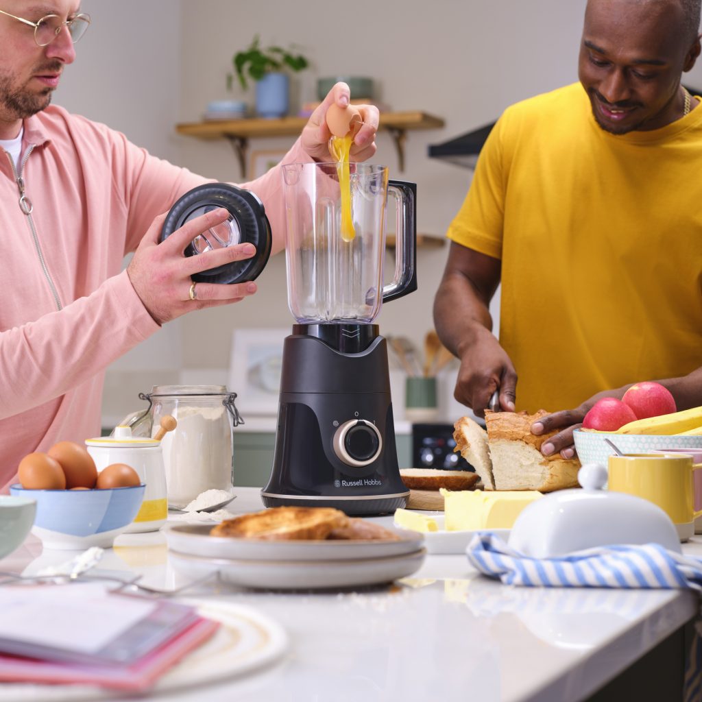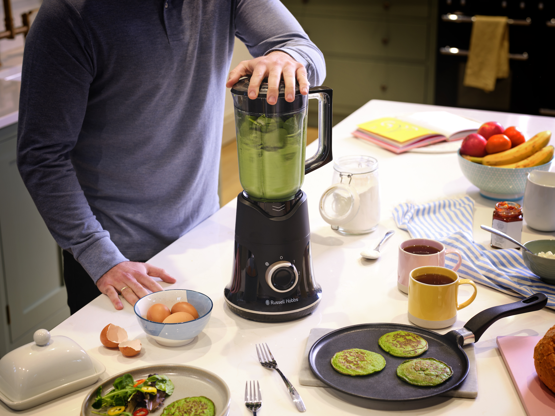 Die sättigende Proteinbombe nach dem ausgiebigen Workout, der nahrhafte grüne Smoothie für den Power-Boost am Morgen oder das selbstgemachte Macadamiamus als Nachmittagssnack – der Blade Boost Standmixer von Russell Hobbs ist das kompakte Allroundtalent für zuhause. Smart und ganz ohne Unterbrechung des Mixvorgangs verwandelt er knackiges Gemüse, saftige Beeren, Getreideflocken und Kräuter in leckere, ausgewogene Kreationen – ohne lästiges Stoppen oder Umrühren. Denn dank der innovativen Blade-Boost-Technologie bleiben keine Zutaten mehr im Mixbecher stecken.