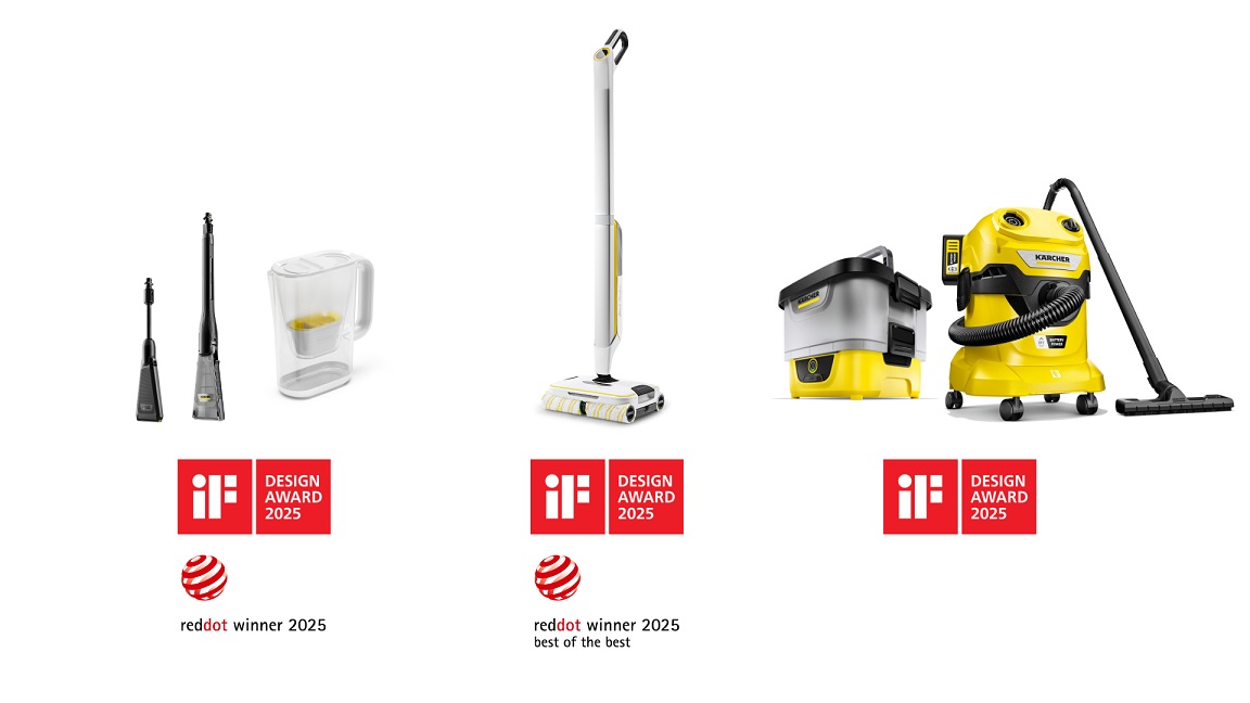 Der Reinigungsgerätespezialist Kärcher wurde im Jahr 2025 für fünf Produkte aus dem Home & Garden-Segment mit dem iF Design Award ausgezeichnet. Drei dieser Produkte erhielten zusätzlich den Red Dot Design Award – eines davon in der höchsten Kategorie „Best of the Best“.