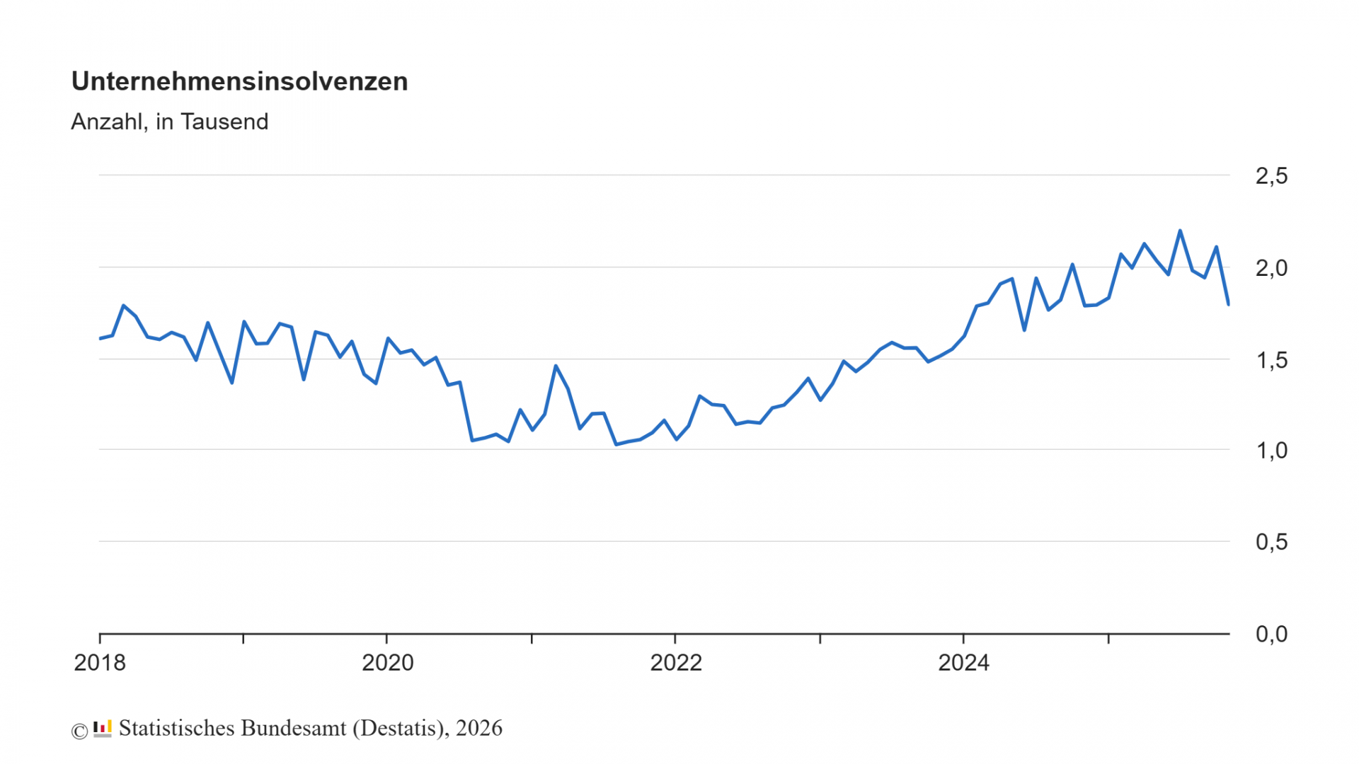 - Destatis: Unternehmensinsolvenzen im November 2025 leicht gestiegen - 16. Februar 2026