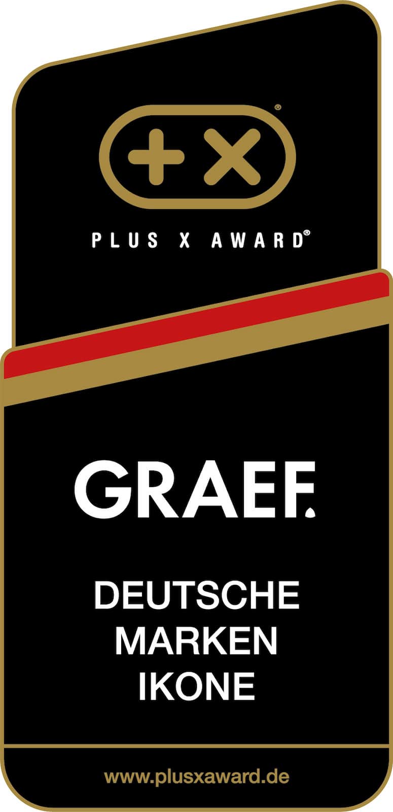 Für Beständigkeit und die kontinuierliche Pflege der Markenwerte wurde Graef mit dem Plus X Award „Deutsche Marken Ikone“ ausgezeichnet.