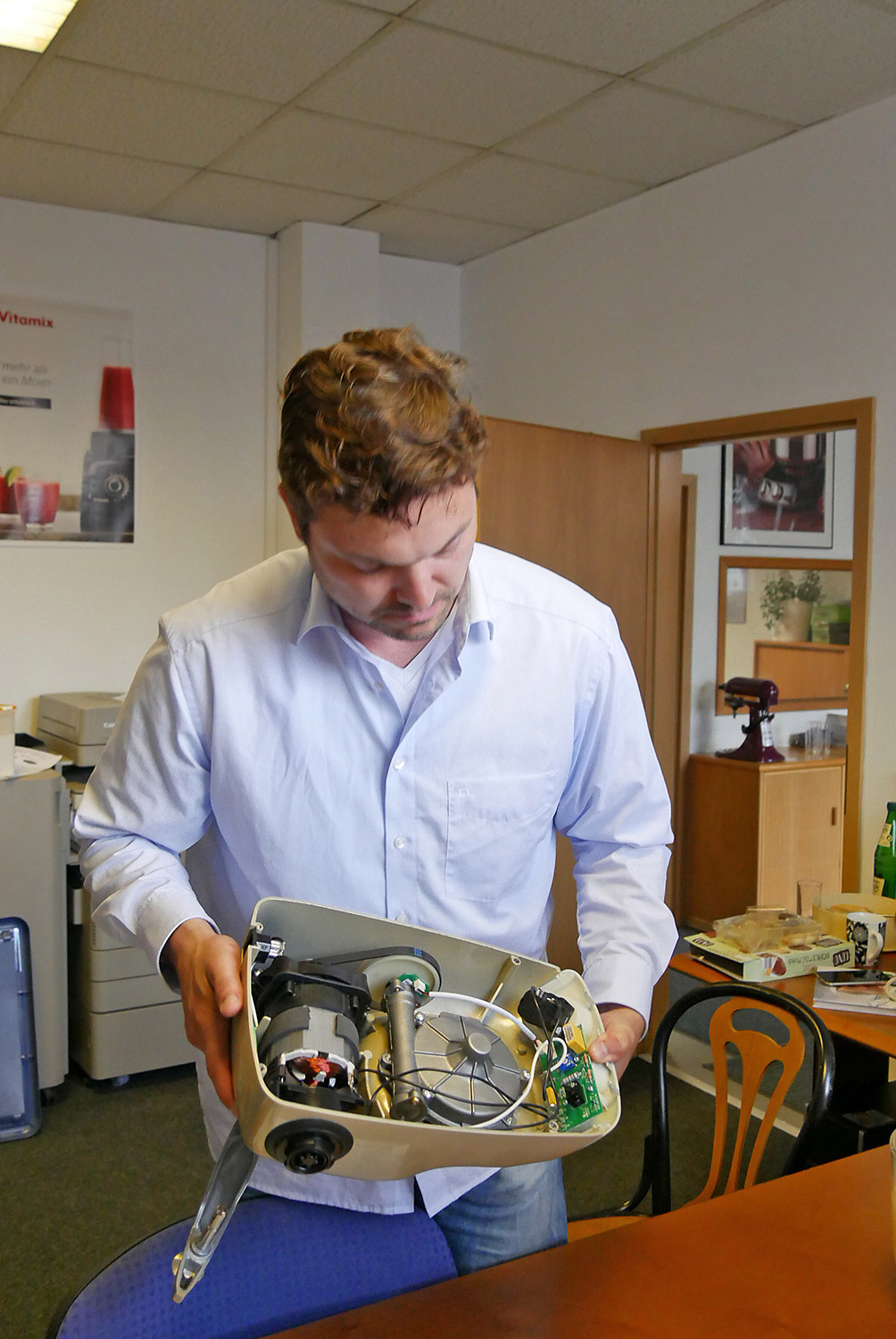 Bislang werden über Holländer Elektro rund 2.000 Küchenmaschinen im Jahr verkauft, in wenigen Jahren sollen es bereits 5.000 Stück sein, die dann bei etwa 100 Handelspartnern (bislang sind es 60) vertrieben werden sollen. Helfen werden dabei vier oder fünf Handelsvertreter, sagt Zacharias, der uns die Vorzüge der „Ankarsrum“ mit der Herstellung eines Brot- bzw. Biskuitteiges anschaulich wie kenntnisreich demonstriert.