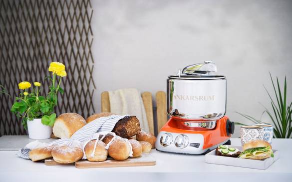 Eine Rückkehr zum ursprünglichen Design der Küchenmaschine erfolgte 1995. Das Retro-Design ist bis heute geblieben und steht in einer Palette von 13 verschiedenen Farben zur Verfügung. Inzwischen ist auch eine große Auswahl an Zubehör erhältlich, das den schwedischen Küchenmaschinen-Klassiker zu einem Allround-Talent in der Küche macht. Ankarsrum Kitchen AB, eine von drei Firmen der Ankarsrum Industries Group, fertigt mit seinen 120 Mitarbeitern die Küchenmaschine von Hand. Durch die Fokussierung auf die Herstellung eines einzigen Produktes verspricht Ankarsrum höchste Qualität. Seit vielen Jahren entwickelt und produziert das Unternehmen als OEM-Hersteller auch Antriebe und Bauteile für hochwertige Küchenmaschinen-Marken wie Vitamix.