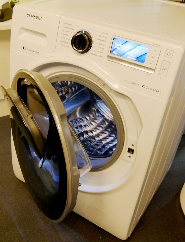 Wehmütig dachte ich an diese Situationen, als ich die neue Samsung Waschmaschine WW8500 AddWash kürzlich auf einer Veranstaltung entdeckte. Was hätte ich unzählige Male für die Sockenklappe gegeben. Im Grunde nichts anderes als eine zusätzliche im oberen Bereich der Waschmaschinentür angebrachte Klappe. Jetzt hätte ich nämlich nur die Pausentaste drücken müssen, die Klappe öffnen und die „vergessene“ Wäsche einzuwerfen brauchen. Genial einfach!