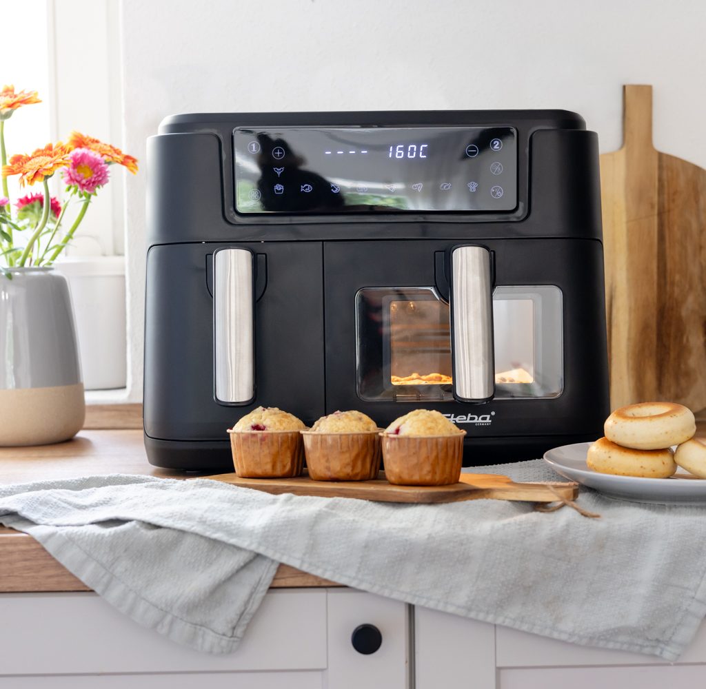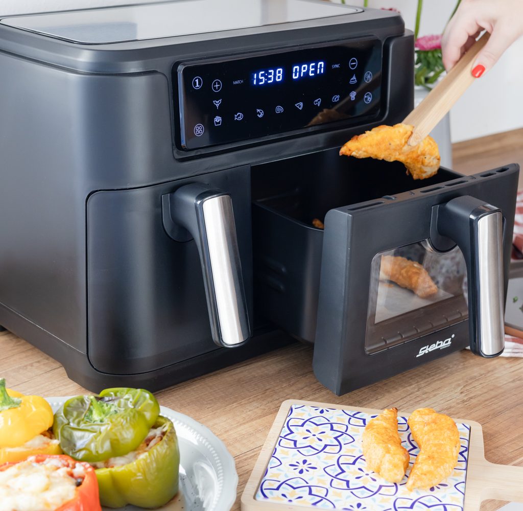 Die Doppel-Heißluftfritteuse HF 9500 DUO ist sowohl auf steba.com als auch in ausgewählten Elektrofachgeschäften erhältlich.